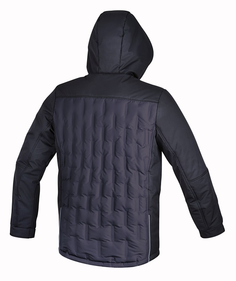 Materiali:? Tessuto esternopetto e schiena: 100% nylon 300D, impermeabilizzato e resistentespalle, maniche e cappuccio: softshell 96% poliestere, 4% spandex? Tessuto interno: 100% poliestere? Imbottitura: 100% poliestereCaratteristiche:? Cappuccio imbottito e foderato con regolatori a coulisse? Chiusura frontale con zip? Due tasche in vita con chiusura zip? Tasca esterna al petto con chiusura zip? Tasca interna al petto con chiusura zip verticale? Due tasche interne in vita? Polsiniregolabili a strappo? Trapuntatura a caldo? Dettagli reflexColore:? Petto e retro: grigio antracite? Maniche e cappuccio: neroTaglie:S, M, L, XL, XXL, XXXL