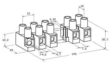 4 mm2, •Materiale del corpo isolante: Poliammide (PA 6.6) naturale •Autoestinguenza: UL 94 - V2; IEC 695-2-1 a 850°C e IEC 695-2-2 •Temperatura ambiente di utilizzo: T 125°C •Temperatura di breve durata: T 160°C •Tensione nominale: 400 V •Tensione di prova: 2500 V •Corrente di prova: 32 A (4 mm2); 41 A (6 mm2) •Morsetto femmina: Ottone nichelato •Viti imperdibili: M 3,5x7 in acciaio zincato