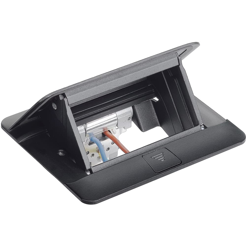 torretta a scomparsa POP-UP 4 moduli living-light, matix. Torretta da incasso per pavimenti flottanti con KIT 150640NK o a pavimento con apposita scatola da incasso con KIT 150640NL. Finitura nera