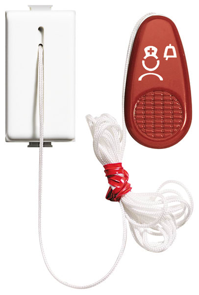 Pulsante a tirante (NC/NO) - Màtix Bianco Antibatterico da installare nel bagno. Impugnatura di colore rosso con icona infermiera per attivare larichiesta d’assistenza.Deve essere collegato al terminale di cameraDispositivo 1 modulo - serie civile.