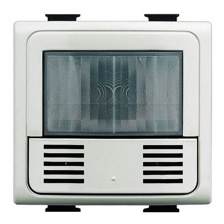 Green Switch: Sensore BUS-SCS a doppia tecnologia: infrarossi passivi (PIR) ed ultrasuoni (US), adatto per il rilevamento della presenza e del livello di illuminamento, installazione ad incasso in serie civile (Axolute, LivingLight o Màtix), dimensioni 2moduli, grado di protezione IP20, connessione tramite connettore SCS, area di copertura frontale di 8m per un ampiezza di 180° ad un’altezza di installazione di 1.2 m, altezza massima di installazione di 1.2 m, alimentazione 27 V d.c., regolazione tramite telecomando base/avanzato (088240 e BMSO4001) o tramite gli appositi software di configurazione, del livello di illuminamento da 5 lux a 1275 lux, del tempo di ritardo da 5 s a 59m e dei principali parametri di funzionamento.