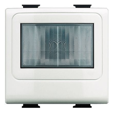 Green Switch BUS-SCS ad infrarossi passivi (PIR), adatto al rilevamento del movimento e del livello di illuminamento, installazione ad incasso in serie civile (Living Now, Axolute, LivingLight o Màtix), dimensioni 2 moduli, grado di protezione IP20, connessione tramite connettore SCS, area di copertura frontale di 8m per un ampiezza di 180° ad un’altezza di installazione di 1.2 m, altezza massima di installazione di 1.2 m, alimentazione 27 V d.c., regolazione tramite telecomando base/avanzato (BMSO4003 e088240) o tramite gli appositi software di configurazione, del livello di illuminamento da 5 lux a 1275 lux, del tempo di ritardo da 5 s a 59m e dei principali parametri di funzionamento.