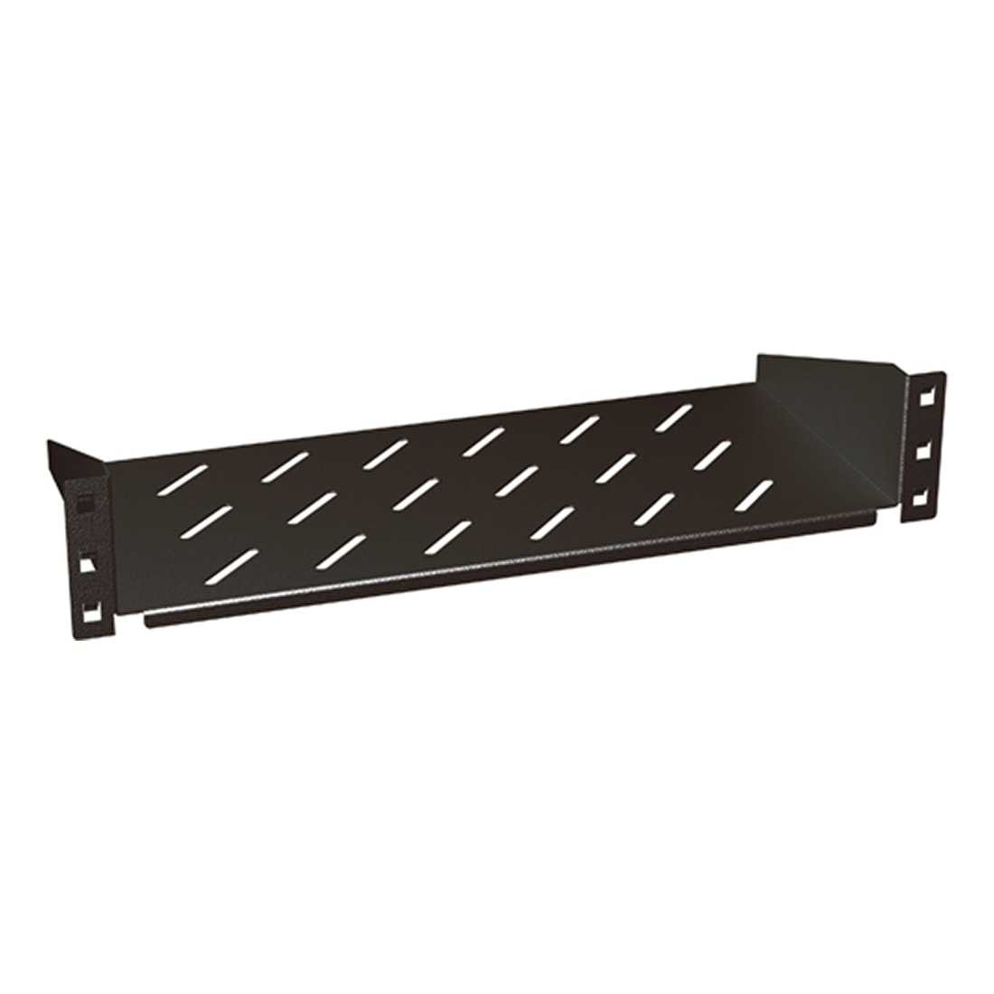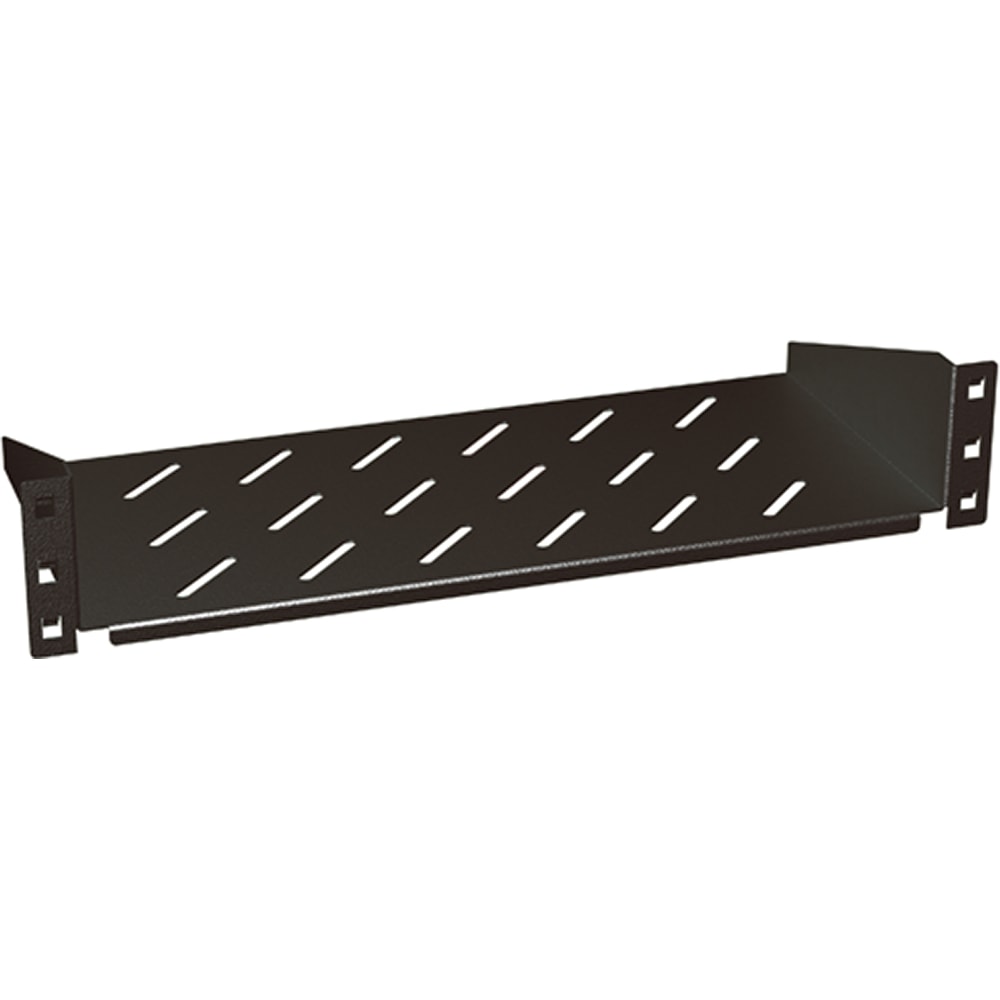 ripiano di supporto a sbalzo in lamiera - montaggio rapido mediante l’innovativo sistema Quick Fix senza viti - per installazione in tutti i quadri modulari 19” - portata massima 15kg - profondità 200 mm - colore nero RAL9005 - 2 unità rack