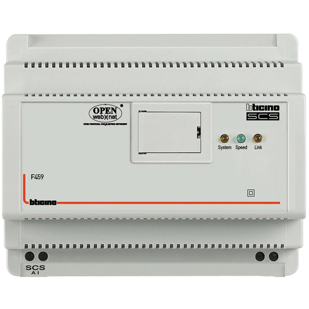 Piattaforma di integrazione tra i sistemi di BTicino con il BUS-SCS verso sistemi di terze parti o prodotti di altri produttori. Dimensioni 6 moduli DIN.Per verificare la fattibilità di integrazioni specifiche e per richiedere la licenza necessaria all\'utilizzo del Driver manager contattare gli specialisti del Servizio Integrazione Sistemi di BTicino al numero verde 800.837035.