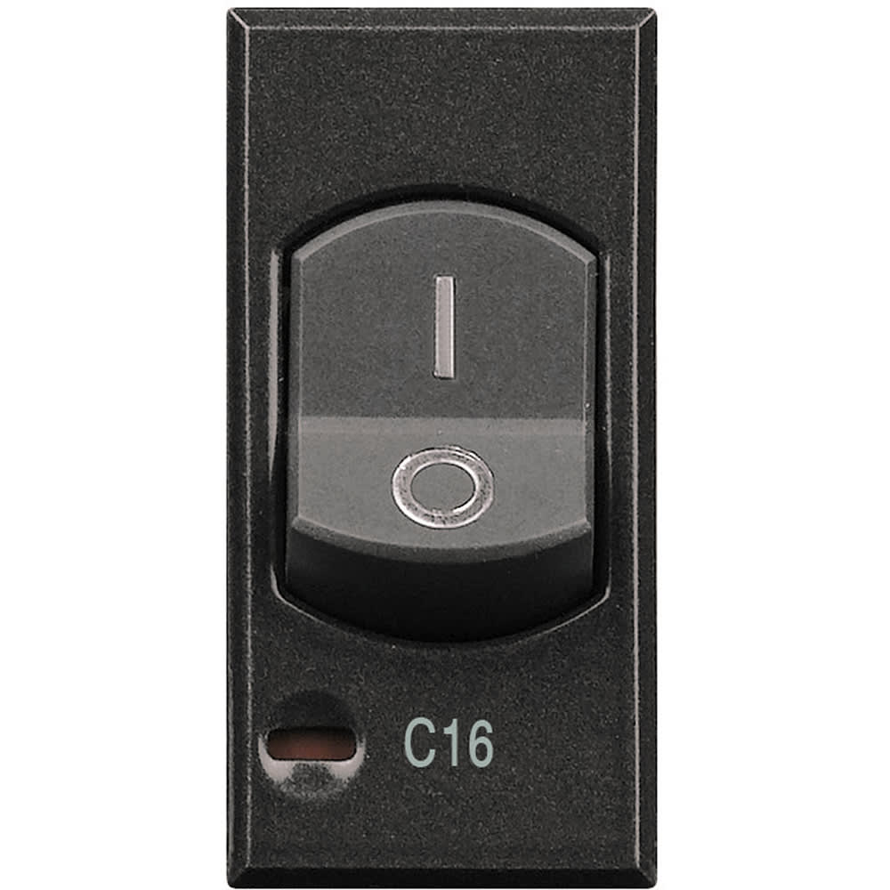interruttore automatico magnetotermico bipolare 1 polo protetto 16A 230 Vac- potere interruzione 3000A 230 Vac - antracite