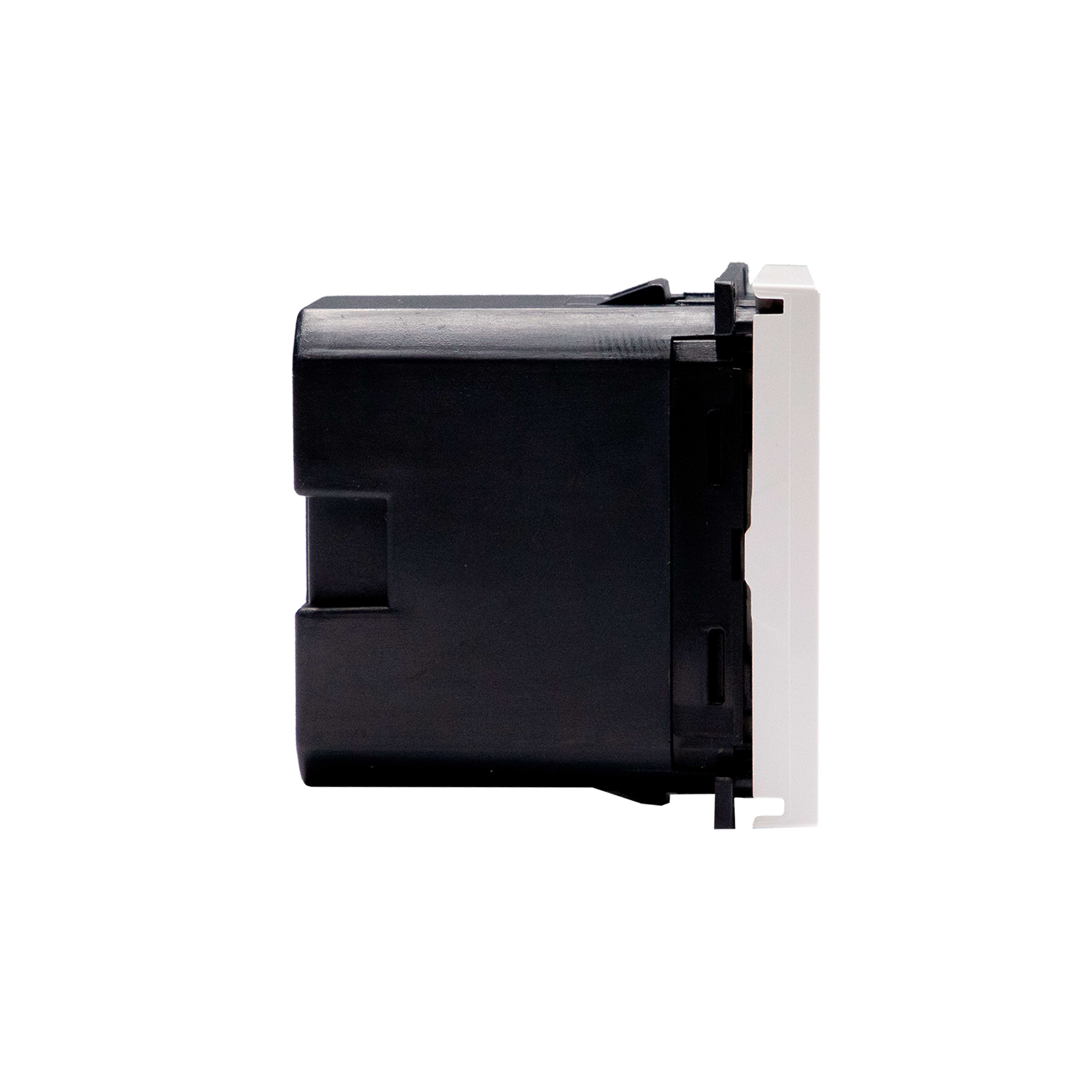 Comando luci wireless. Permette il controllo ON/OFF e dimmerizzazione di uno o più dispositivi connessi per il comando di luci. Può essere installato in qualsiasi scatola da incasso senza alcun cablaggio. La batteria può essere sostituita senza rimuoverlo dal supporto. LED integrato per la segnalazione batteria scarica. Alimentazione a batteria 3 V tipo CR2032 (fornita a corredo) con autonomia di 8 anni - Ingombro 1 modulo - bianco