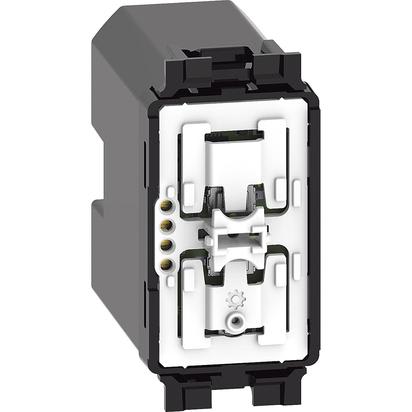 Comando scenario Entra&Esci wireless da incasso, dotato di 2 pulsanti per l’attivazione degli scenari Entra ed Esci personalizzabili dall’app Home + Control. Può essere installato in qualsiasi scatola da incasso senza alcun cablaggio. La batteria può essere sostituita senza rimuoverlo dal supporto. LED integrato per la segnalazione batteria scarica. Alimentazione a batteria 3V tipo CR2032 (fornita a corredo) con autonomia di 8 anni - 1 modulo