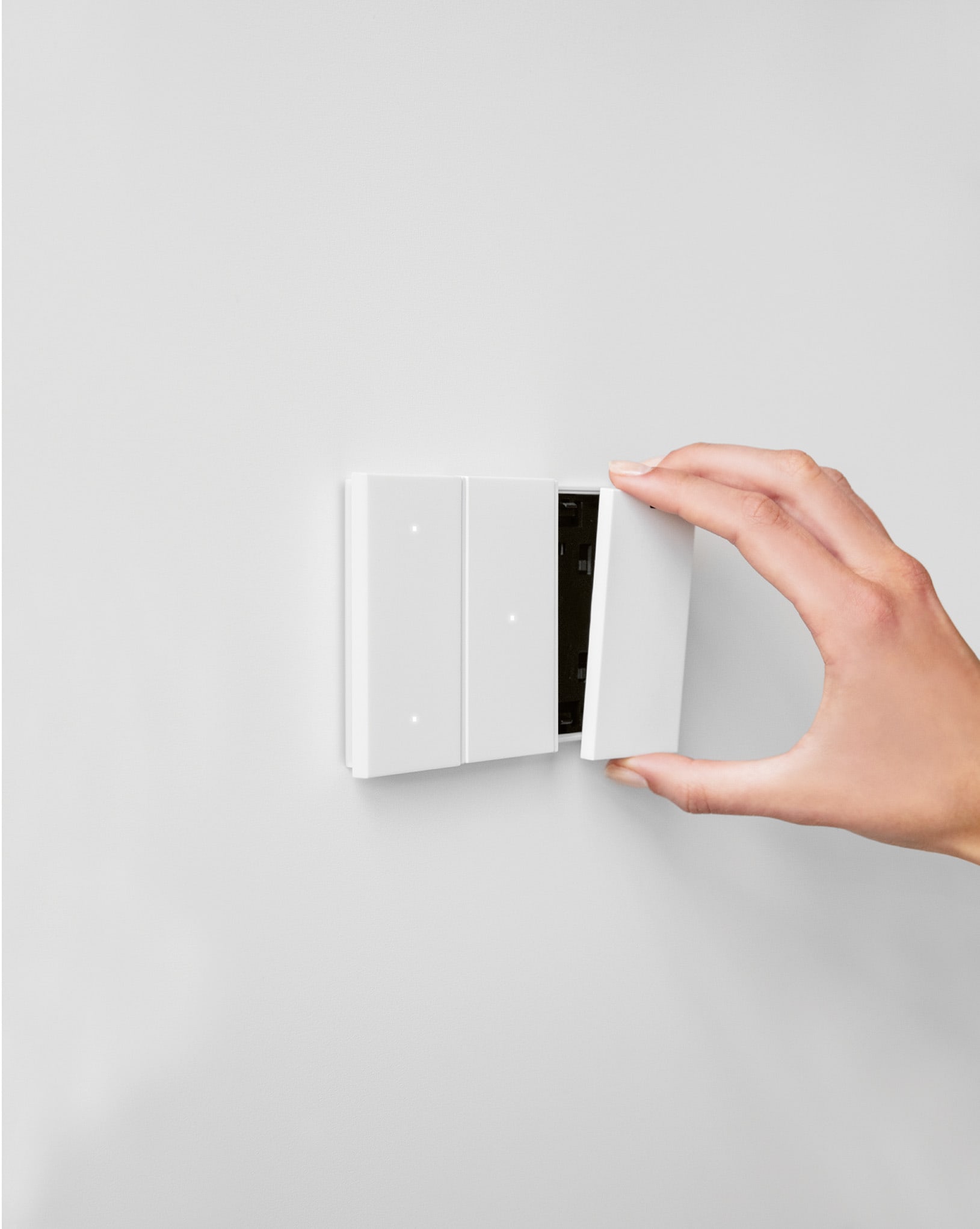 Comando LUCE. Comando digitale touch per gestire funzioni luce ON/OFF. Un singolo comando può essere utilizzato per gestire fino a un massimo di due funzioni tra luci singole, gruppo luci o generale luci. 1 modulo. Colore bianco.