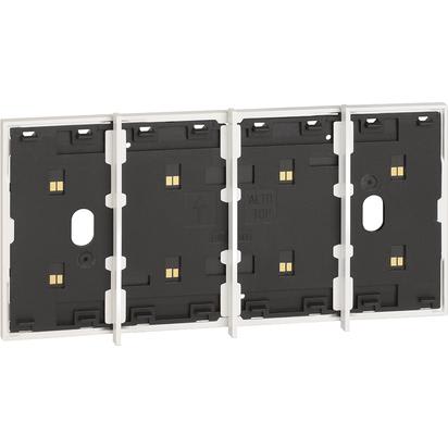 Frame elettrificato con barrette estetiche (rimovibili) di divisione tra i comandi. Per l’installazione di max. 4 comandi digitali o cover art. KW/KG/KM8100. Installazione in scatola da 4 moduli con supporto K4704. Colore bianco.
