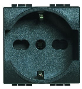 presa 2P+T 16A 250 Va.c. - interasse 19mm e 26mm in configurazione bipasso - alveoli protetti; contatti laterali di terra per spine standard tedesco; adatta per: spine standard Italia 2P e 2P+T 10/16A, spine standard tedesco 2P+T 16A - Antracite