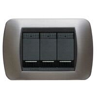 placca 3 moduli - acciaio spazzolato (con cornice interna colore antracite) - materiale metallo