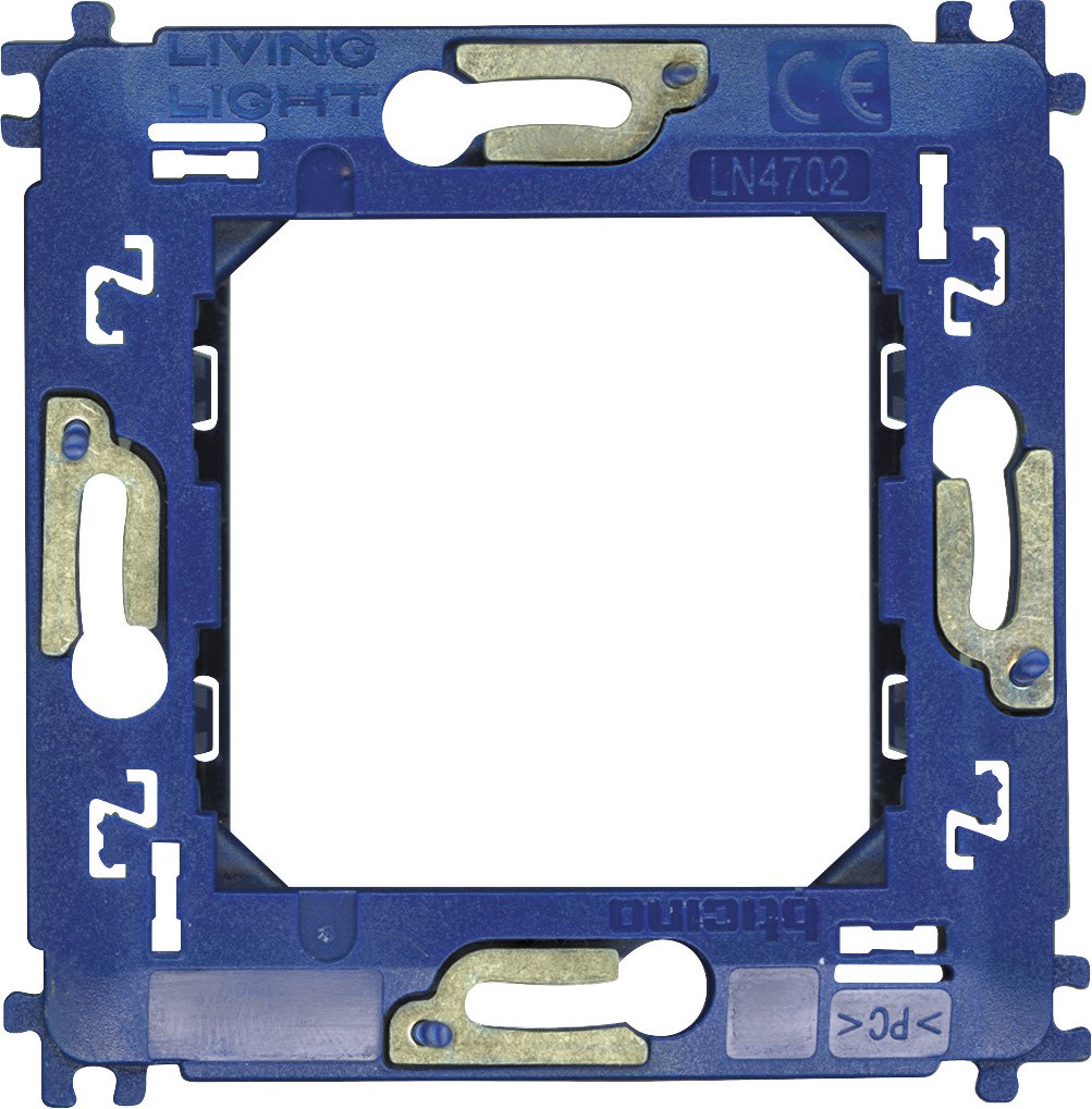Supporto 2 moduli - per placche quadre LNA4802.. Livinglight, fornito senza le viti di fissaggio. Il fissaggio avviene con le viti che si trovano a corredo delle scatole 502E e PB502N.