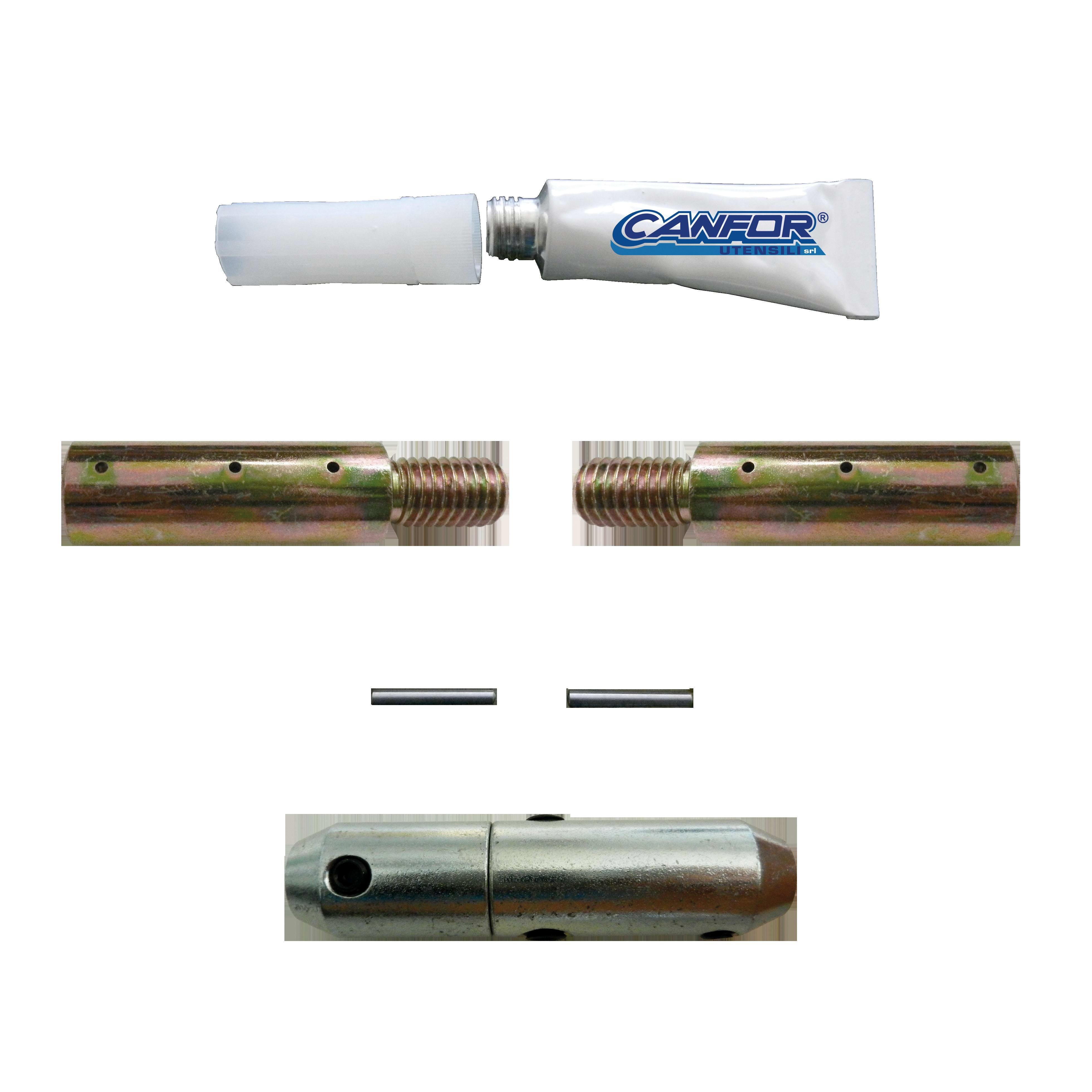 Set di riparazione composto da: 2 perni M12 art. 645/08 - 1 colla art. 645/03 - 1 giunto girevole art. 641/05. Adatto per: 159 ø 14 mm.