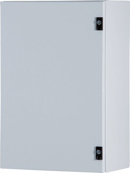 Cassetta composta da corpo, porta cieca esterna acciaio inos AISI 304, piastra interna fissata sul fondo e piastra passacavi• corpo in lamiera pressopiegata e saldata sp. 12-15/10, verniciatura con polveri epossipoliestere termoindurenti in tinta RAL7035bucciato • porta in acciaio inox 304 satinato scotch brite sp. 12-15/10 • piastra interna in lamiera sp. 15-20/10 sendzimir • guarnizioni, poliuretaniche applicate in colata continua • cerniere reversibili con apertura 110° • serratura con impronta doppia aletta • grado di protezione IP 66-UL NEMA TYPE 4 IK 10.