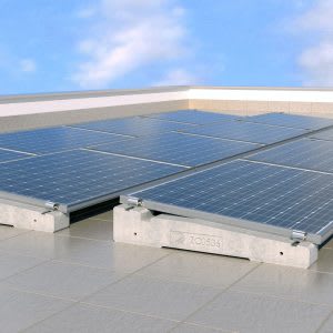 Il sistema con supporto in conglomerato cementizio ZC0536, consente di installare una singola fila di moduli fotovoltaici disposti in orizzontale o verticale con inclinazione 5°.Il montaggio a scatto dei morsetti universali terminale KMTU2950 e centrale KMCU2950 avviene in corrispondenza del lato corto dei moduli.L’utilizzo di accessori quali carter, barre di rinforzo, piastre aumentano la stabilità al carico vento ottimizzando l’incidenza di peso strutturale.