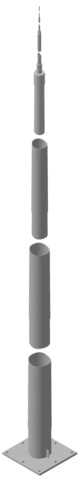 Palo componibile di captazione per fondamenta a bicchiere o in cemento, provato secondo CEI EN 62561-(1+2). Per la protezione da scariche dirette di impianti particolari, come p.es. impianti biogas, campi fotovoltaici a terra, impianti classificati Ex, depositi munizioni. Il palo è dimensionato conforme all'Eurocode per raffiche di vento max. 166 km/h. I pali vengono messi in opera sul posto, con la fondazione a bicchiere (elemento prefabbricato) o nelle fondamenta in cemento con la gabbia di ancoraggio.Esecuzione con piastra a flangia per un montaggio rapido e componenti conici del palo con sistema ad innesto, compresa statica provata. Altezza sopra terra 22,35 m.