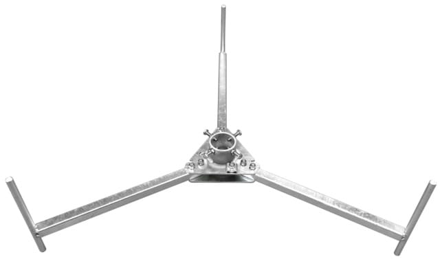 Tripode per l'installazione indipendente di tubi portanti DEHNiso-Combi (D50, lunghezza 3200 mm) oppure aste di captazione D40 con lunghezza 3000 mm. Per il montaggio tramite zoccoli in cemento con tecnica a cuneo. senza ulteriore fissaggio ad elementi della costruzione. Adattabile all'inclinazione del tetto fino a max 10°. Esecuzione ripiegabile per il trasporto.
