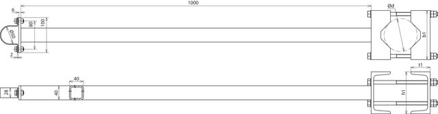 Distanziatori per antenne omnidirezionali per tubi portanti DEHNiso-Combi, con conduttura HVI power posata all'interno e/o all'esterno del palo d'antenna. Per realizzare un impianto di captazione separato e influenzare il meno possibile la caratteristicadi irradiazione. Esecuzione Fe/tZn con foro quadrato, distanza 1000 mm.
