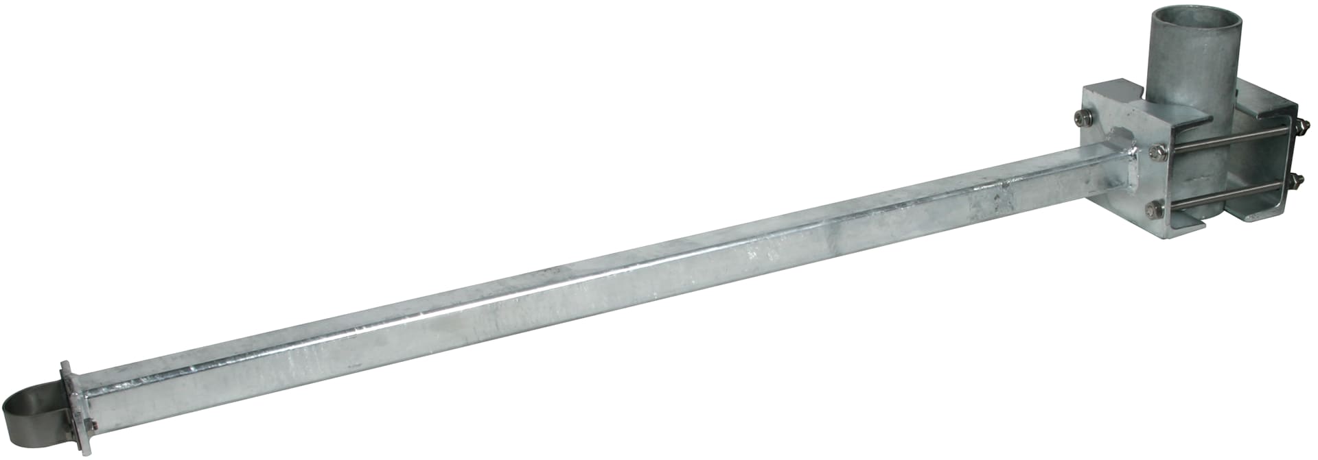 Distanziatori per antenne omnidirezionali per tubi portanti DEHNiso-Combi, con conduttura HVI power posata all'interno e/o all'esterno del palo d'antenna. Per realizzare un impianto di captazione separato e influenzare il meno possibile la caratteristicadi irradiazione. Esecuzione Fe/tZn con foro quadrato, distanza 1000 mm.