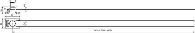 Staffa portafilo per la posa di calate su pluviali. Esecuzione tipo PV regolabile, con vite di serraggio M8, posa fissa del conduttore.