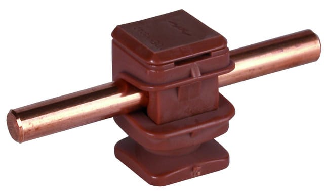 Staffa portafilo DEHNsnap per la posa di conduttori tondi. Sistema di staffaggio in materiale plastico con posa laterale e cappuccio a scatto che si innesta da solo (doppio innesto del cappuccio). Sistema di staffaggio senza viti con posa libera del conduttore. Esecuzione altezza 16 mm e filetto interno con vite, in plastica resitente alle intemperie, stabilizzata ai raggi UV e senza alogeni.