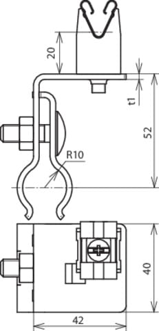 Staffa portafilo per tetti per il fissaggio di dispositivi di captazione come captatori su tetti metallici. Esecuzione per tetti con scanalatura verticale arrotondata, con staffa portafilo DEHNgrip, posa libera del conduttore.