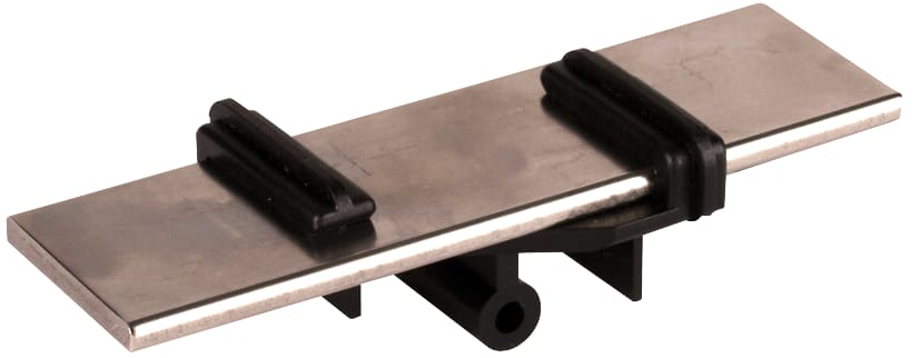 Adattatore per conduttori piatti per il fissaggio a scatto su staffe portafilo per tetti tipo FB e KF, per conduttori piatti 30 mm. Posa libera del conduttore.
