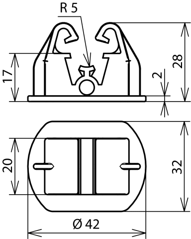 Adattatore per conduttori tondi per il fissaggio a scatto sulla staffa portafilo per tetti per FB e KF, per conduttori tondi 10 mm. Esecuzione con posa libera del conduttore.