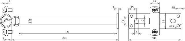Staffa portafilo per la posa di condutture HVI in ambienti con pericolo di esplosione della zona Ex 1 (gas, vapori e miscele), e anche nella zona Ex 21 (polveri combustibili). Per le particolari condizioni d?installazione e? garantito che non si verifichi alcuna scintilla elettrica verso parti metalliche vicine durante il passaggio della corrente di fulmine nella conduttura HVI. Esecuzione con bussola distanziatrice di 200 mm, per il fissaggio su parti metalliche di costruzioni (ad es. facciate).