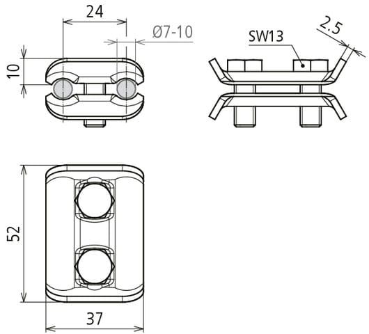 DEHN ITALIA SPA - DEH307000 CONNETTORE PARALLELO FE/TZN PER TD7-10MM - 307000