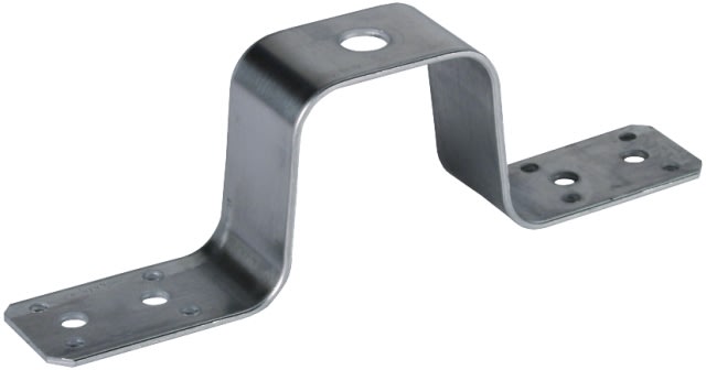 Cavallotto di ponticellamento secondo CEI EN 62561-1, per il collegamento e la connessione di rivestimenti metallici mediante rivetti oppure viti. Esecuzione corta con foro centrale.
