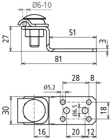 Ganascia in accordo a CEI EN 62561-1 per il collegamento di rivestimenti metallici mediante rivetti oppure viti. Esecuzione con cavallotto.