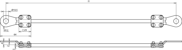 Conduttore di terra in rame molto flessibile, resistente al gelo, stabilizzato ai raggi UV, assemblaggio secondo VG 96927-11. Esecuzione con capocorda, 2 x chiuso M10.