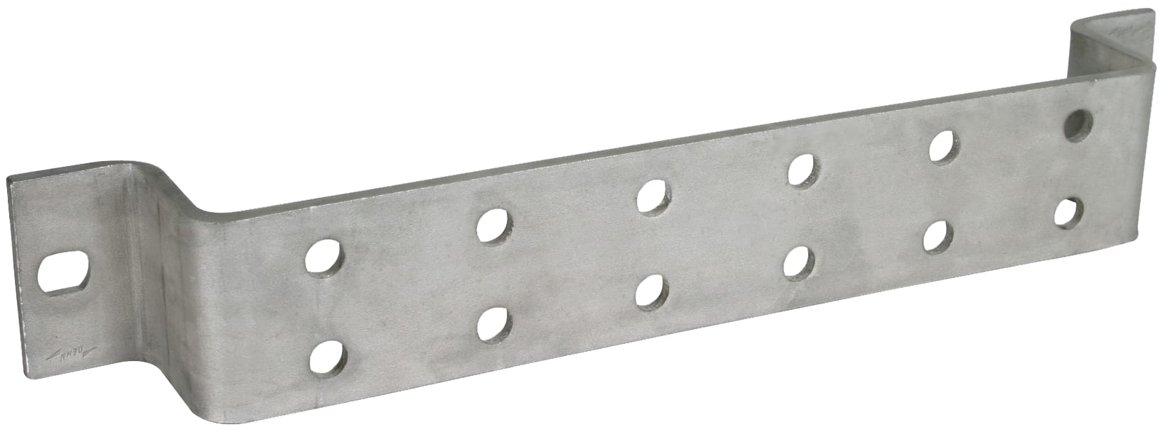 Barra di messa a terra da avvitare su costruzioni in acciaio. Per la connessione di conduttori piatti con foro o conduttori tondi con p. es. connettore KS. Esecuzione con 2x 6 collegamenti, fori D11 mm.