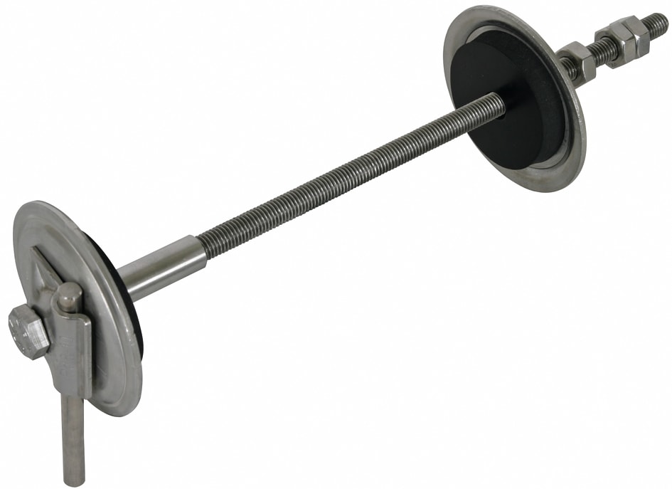 Passante per tetti e pareti con morsetto MV in INOX (AISI 316) per il passaggio stagno di conduttori di terra ed equipontenzilità di pareti e muri; con asta filettata M10 in INOX. Esecuzione per l’installazione successiva con foro (D14 mm) oppure tramitegli elementi della cassaforma. Con prova alla pressione dell'acqua fino a 1 bar (fino a 10 m di profondità in acqua ferma).