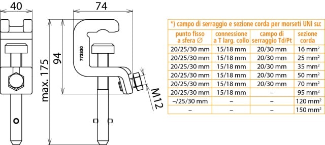 Zona di serraggio - 30...30 mm