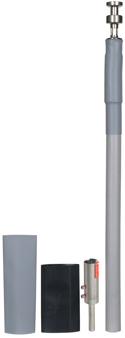 Conduttura HVI (calata isolata resistente all'alta tensione) per il rispetto della distanza di sicurezza verso corpi metallici secondo la norma DIN EN 62305-3 (VDE 0185-305-3) per evitare scariche pericolose tra le componenti della protezione da fulmini esterna e componenti metalliche interne (impianti elettrici, tubazioni, ecc.). Per evitare scariche in superficie, la conduttura HVI è dotata di un rivestimento esterno speciale che permette di “scaricare” le elevate tensioni impulsive da fulmine verso unpotenziale di riferimento. Esecuzione conduttura HVI (preassemblata per la posa all'interno di tubi, nera) con un elemento terminale e un elemento di connessione di terra. Distanza di sicurezza equivalente s = 75 cm (in aria), s = 150 cm (muratura).