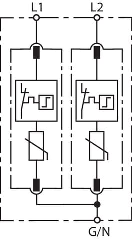 Limitatore di sovratensione multipolare DEHNguard MU, Open-Type 1 SPD omologato ANSI/UL 1449, costituito da basetta e moduli di protezione innestati. Elevata sicurezza dell?apparecchio tramite l?unita di monitoraggio con Thermo-Dynamic-Control. Permette la protezione di utenze finali. Per la protezione di sistemi di fase Split.