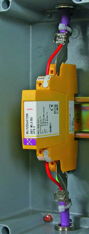 Due morsetti a molla per il collegamento permanente di uno schermo, a bassa impedenza, sul lato protetto e non protetto di un BLITZDUCTOR SP/XT/XTU di una linea di segnale schermata. Con coperchi isolanti ad innesto per la messa a terra indiretta dello schermo, con fascette e nastri isolanti.