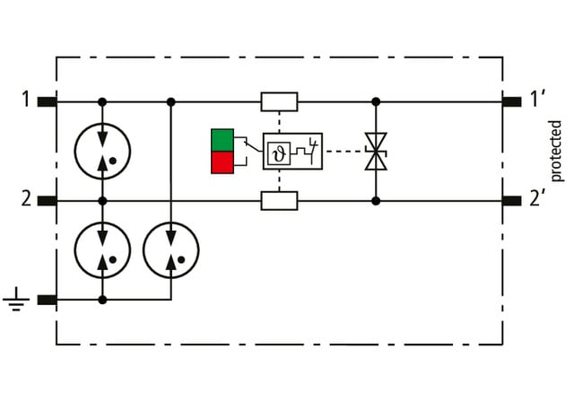 Limitatore di sovratensione modulare, in esecuzione stretta da 6 mm e connessione Push-in con indicazione di funzionamento per la protezione di 1 coppia di fili di circuiti di misura a sicurezza intrinseca e di sistemi bus. Adempie i requisiti di FISCO. Resistenza all'isolamento > 500 V filo-terra. Con sezionamento del segnale per motivi di manutenzione.