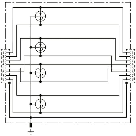 Scaricatore per corrente di fulmine universale a risparmio di spazio con larghezza d?installazione di 19 mm e tecnologia di connessione RJ45 per il collegamento equipotenziale antifulmine. Protezione di applicazioni in cablaggi strutturati secondo la classe D fino a 100 Mhz, ad es. pathcord per Ethernet, distributori di dati, sistemi di telecamere digitali a circuito chiuso, Power over Ethernet (IEEE 802.3 conforme fino a 4PPoE) e in generale interfacce basate su Ethernet. Protezione di tutti i doppini tramite potenti spinterometri a gas. Adattatore in versione completamente schermata con prese di collegamento RJ45 per il montaggio su montaggio su guida DIN. Con collegamento a vite aggiuntivo lato alloggiamento per un collegamento di terra ottimale.