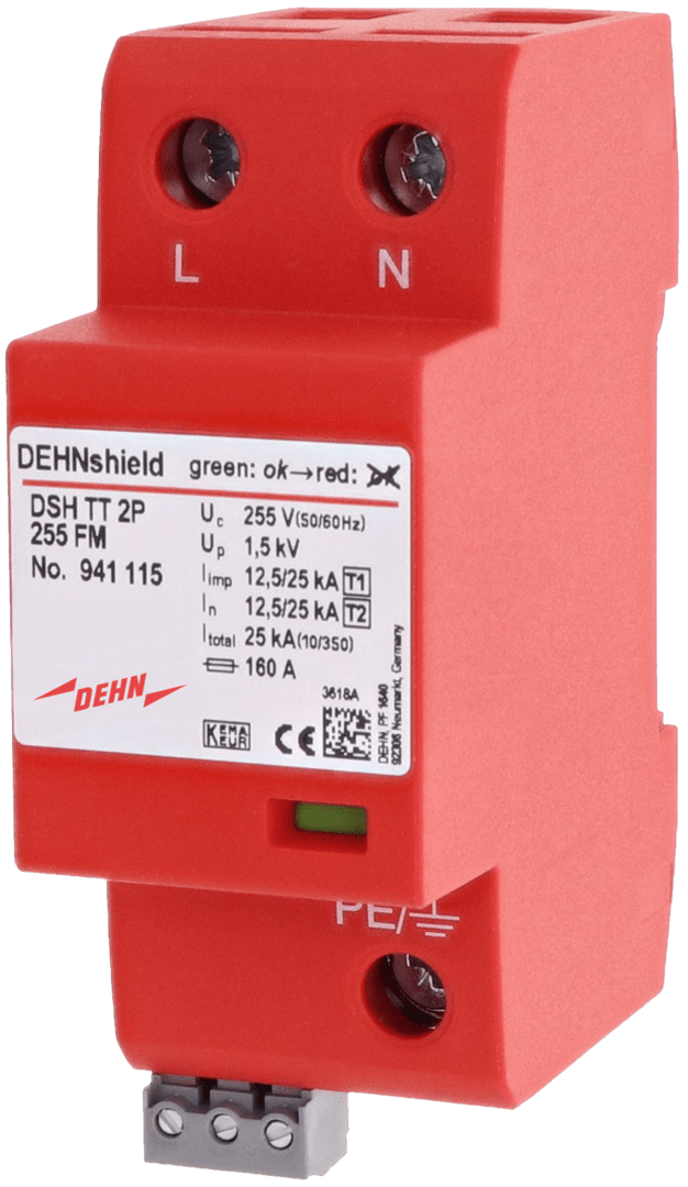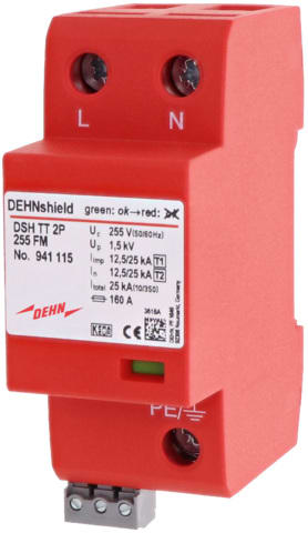 DEHN ITALIA SPA - DEH941115 Scaricatore combinato DEHNshield Tipo 1+ 2 ottimizzato per reti monfase TT e TN - 941115