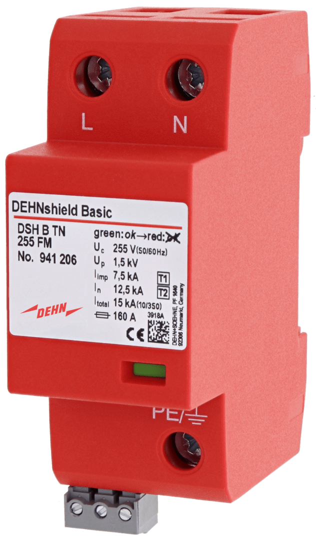 Scaricatore combinato multipolare DEHNshield Basic, SPD Tipo 1 + Tipo 2 secondo EN 61643-11 su base spinterometrica. La tecnologia spinterometrica per utilizzo in spazi ristretti con solo 1 unita / polo permette un'esecuzione compatta. Per la protezione di edifici residenziali in caso di ammodernamento o risanamento. Soddisfa tutti i requisiti di CEI 64-8 e DIN VDE 0100-443. Utilizzabile direttamente sul punto di alimentazione dell'impianto elettrico.