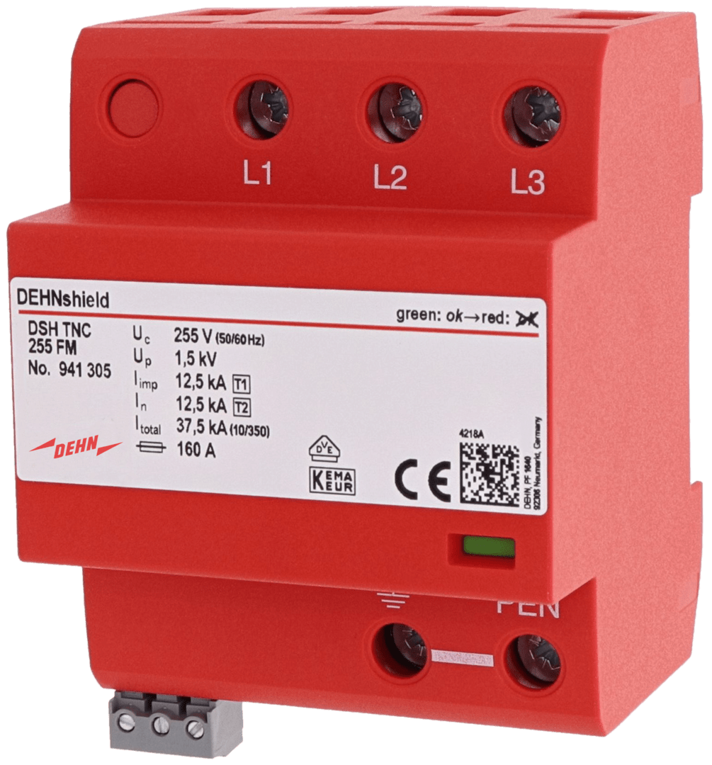 Scaricatore combinato multipolare, DEHNshield, SPD Tipo 1 + Tipo 2 secondo EN 61643-11 su base spinterometrica ed ottimizzato nell'applicazione. La tecnologia spinterometrica per utilizzo in spazi ristretti con solo 1 unità / polo permette un'esecuzione compatta. Per la protezione di edifici residenziali e per l'impiego in applicazioni speciali. Permette la protezione di utenze finali. Per la protezione da sovratensioni, anche in caso di fulminazione diretta. Per l'impiego nel concetto di protezione da fulminazione a zone, ai passaggi 0A – 2.