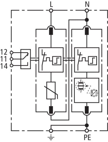Limitatore di sovratensione multipolare, DEHNguard M, Tipo 2 secondo EN 61643-11, avec haute capacite d'ecoulement consiste in un elemento base e moduli di protezione innestabili. Elevata sicurezza tramite dispositivo di controllo "Thermo- Dynamik-Control". Per la protezione da sovratensioni di impianti elettrici utilizzatori in bassa tensione. Per l'impiego nel concetto di protezione da fulminazione a zone, ai passaggi 0B ? 1 e maggiori.