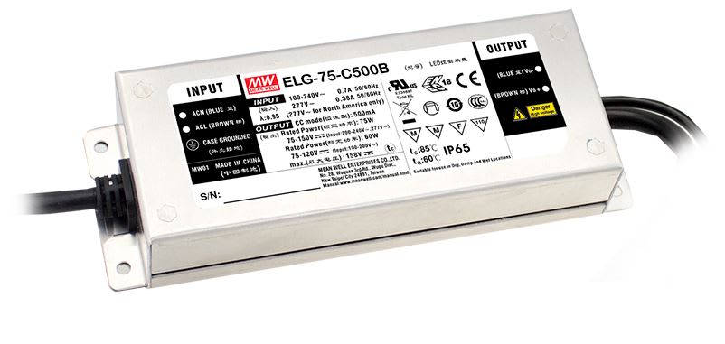 Tensione costante LED driver AC / DC 75W 100-305Vac 24Vdc 3.15A Cavo IP67 per collegamento I / O senza carico / consumo di energia in standby <0,5 W.