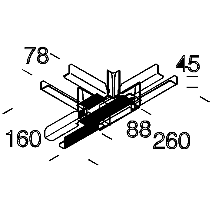 Giunto a T in acciaio zincato, con copertura in materiale termoplastico bianco. Per la giunzione di 3 canali art. 6000.