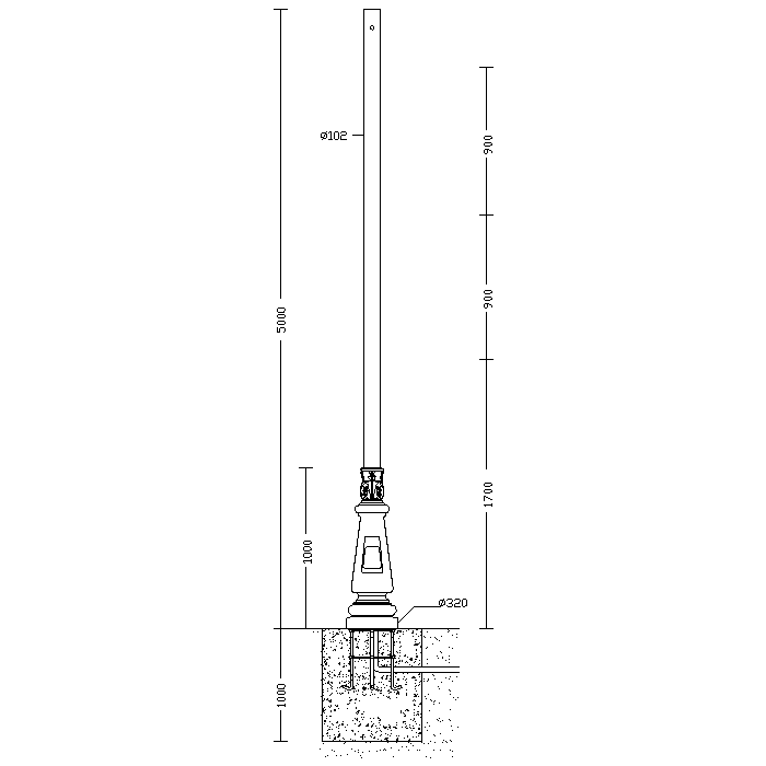 Diametro della cima del palo - 102 mm