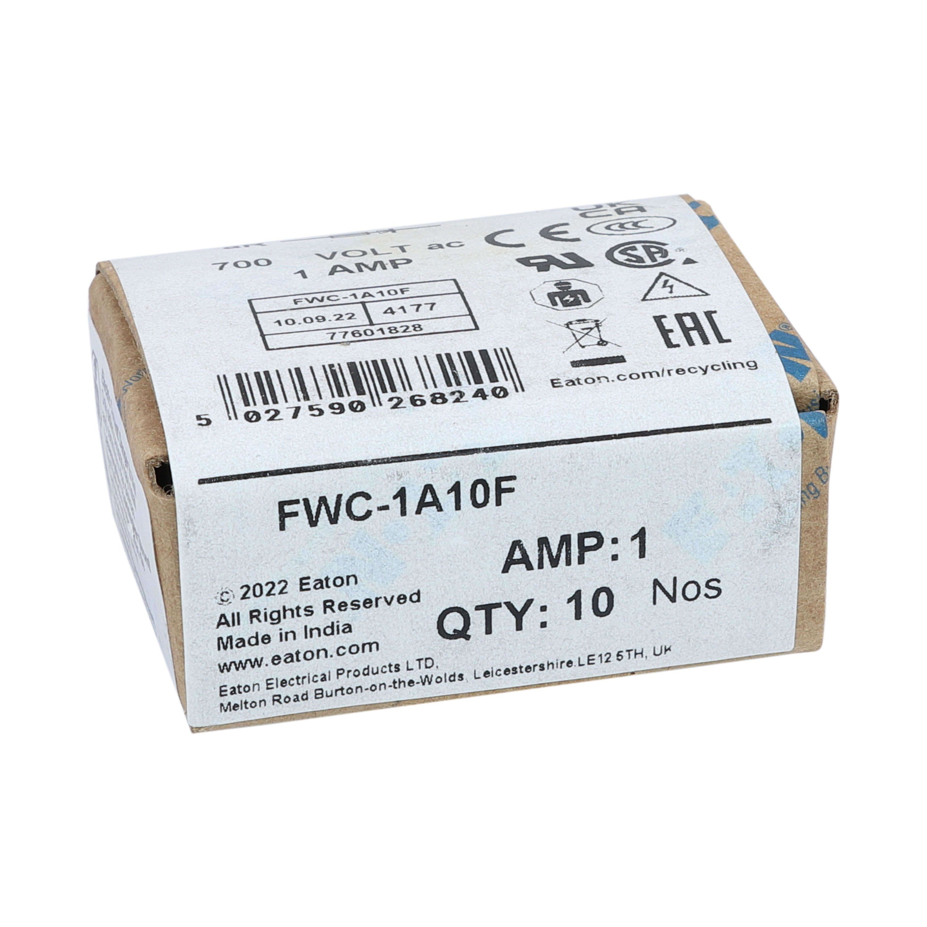 EATON - EAOFWC-1A10F FWC-1A10F 1AMP 600V AC FERRULE 10 X 38MM - FWC-1A10F