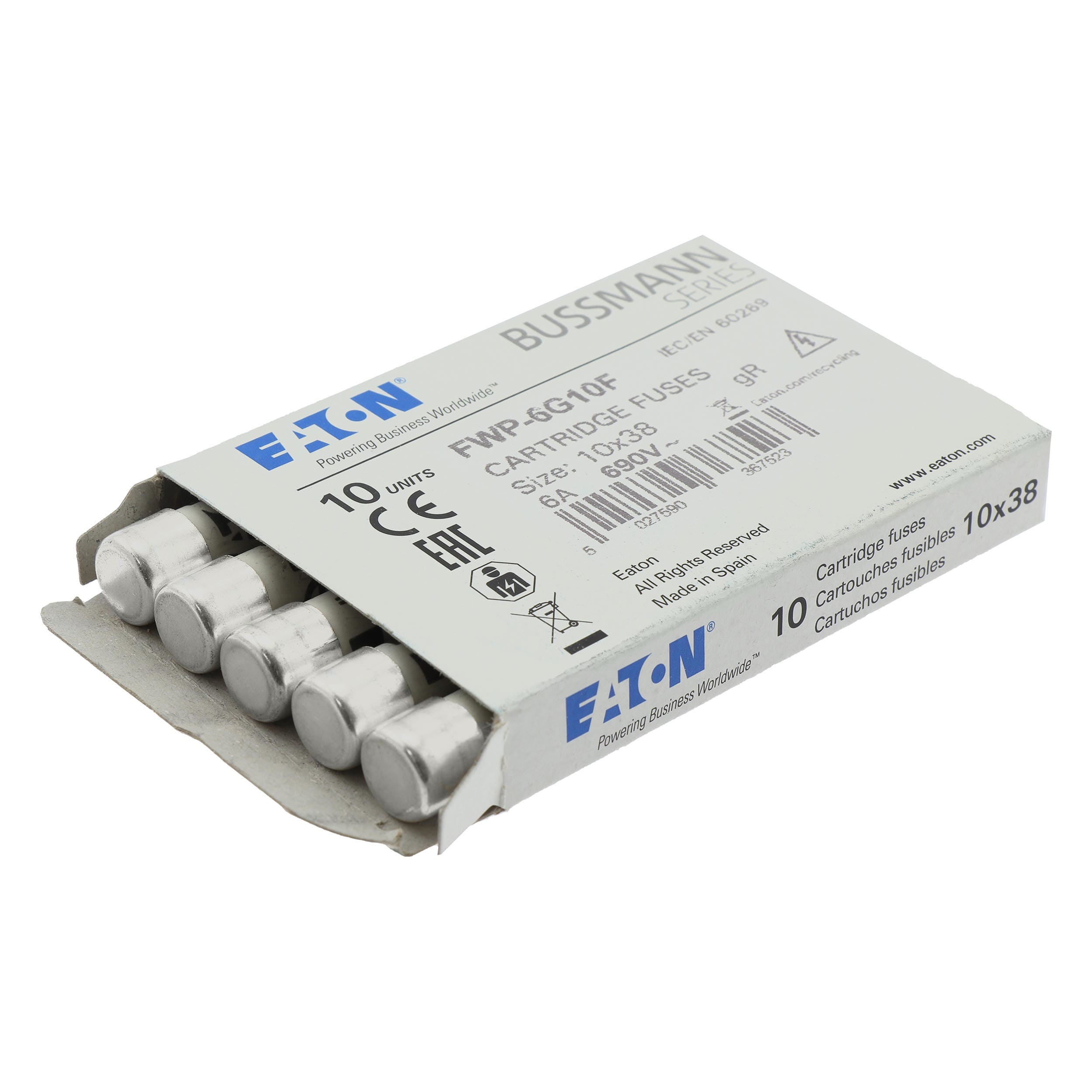 EATON - EAOFWP-6G10F FWP-6G10F 6AMP 690VAC CLASS GR 10X38MM F - FWP-6G10F